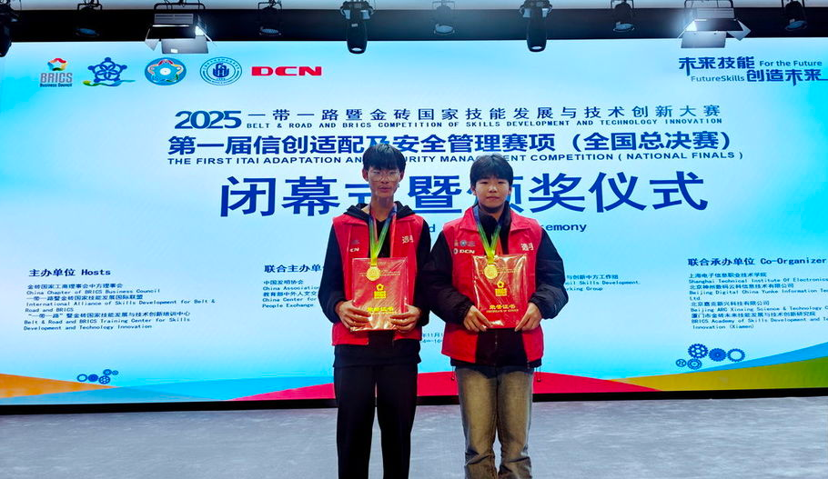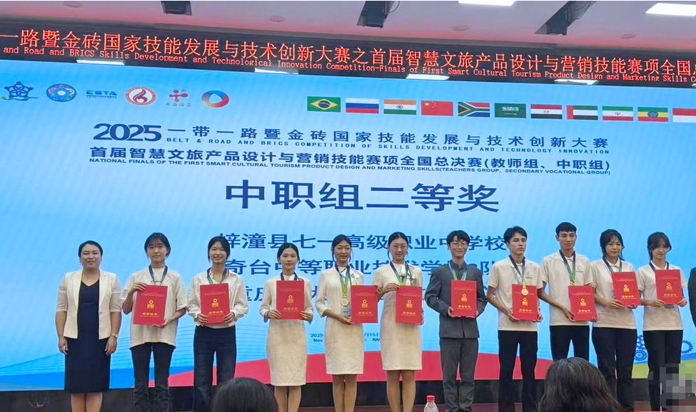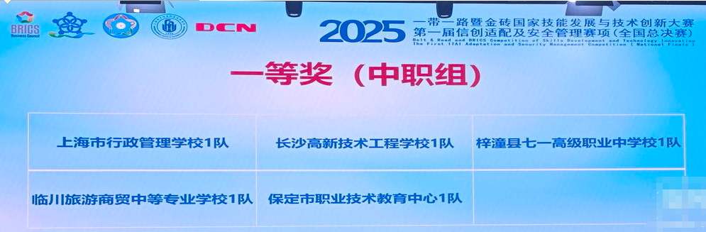 在上海举办的“2025年一带一路暨金砖国家技能发展与技术创新大赛首届信创适配及安全管理赛项全国总决赛”中,面对来自全国的126支顶尖队伍,梓潼七一职中代表队成员陈秦雨、李晨凭借精湛技艺与稳定发挥,经过激烈角逐,成功摘得一等奖桂冠。